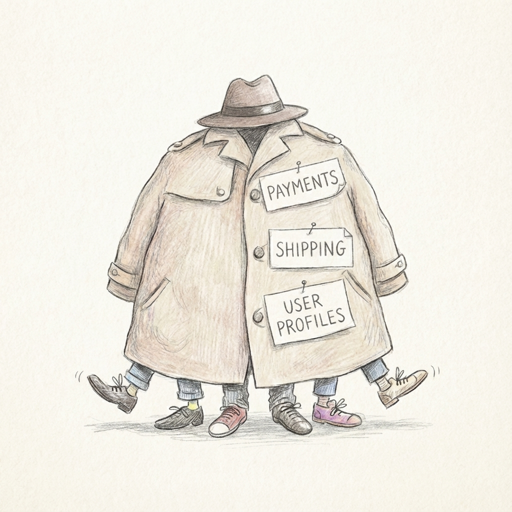 Watch for different rates of change. Pricing rules might change weekly; shipping carrier integrations change quarterly. Bundling them means every pricing change risks breaking shipping.