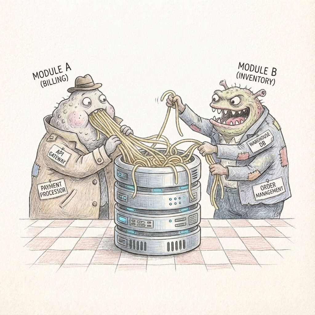 Size matters too. A module that's too large is a monolith in disguise—your "Commerce" module handles products, orders, payments, and shipping, and changes in one area keep breaking another. A module that's too small creates coordination overhead—you've split orders into "OrderCreation," "OrderValidation," "OrderPersistence," and "OrderNotification," and every operation requires coordinating multiple modules.